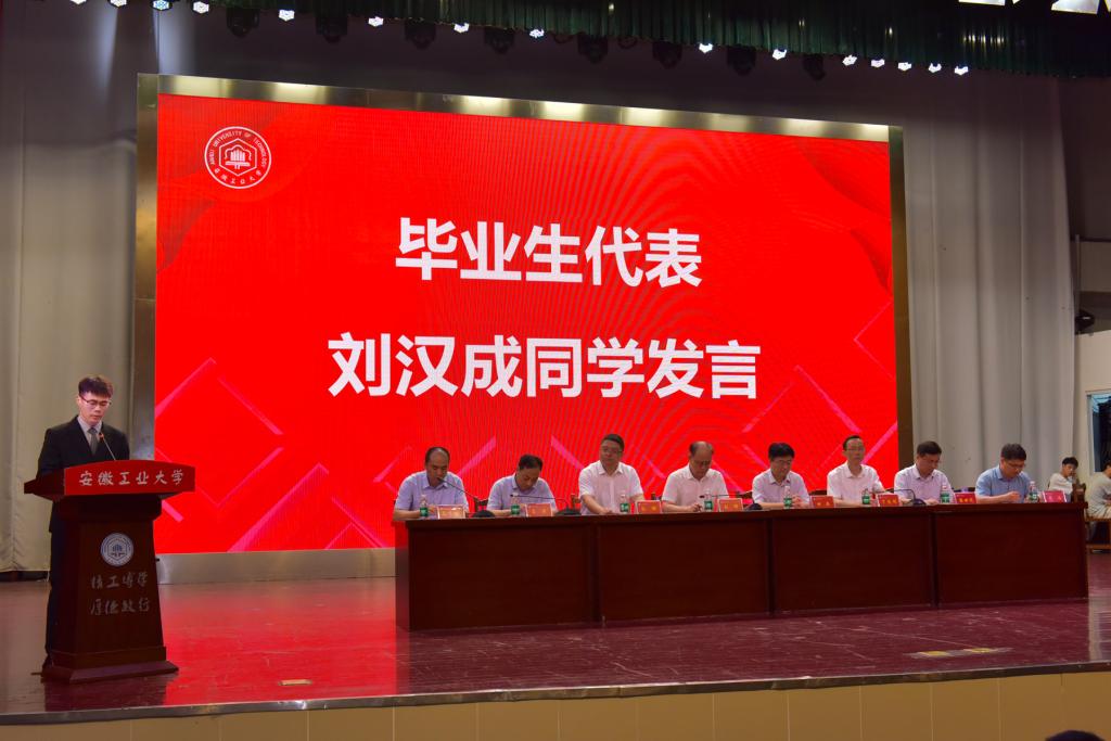 典礼在庄严雄壮的国歌声中拉开序幕。刘明代表公司向顺利完成学业的毕业生表示祝贺,向悉心培养员工的老师、支持鼓励员工的同学与亲友致以谢意和敬意。他简要回顾了近年来公司建设和发展取得的显著成就,肯定了公司和2023届毕业生拼搏奋斗取得的成绩和荣誉。他指出,作为新时代的青年人,只有接过强国建设、民族复兴的接力棒,才能与时代同向同行、共同前进。为激励毕业生更加奋发进取,他对大家提出三点希望:希望同学们坚守初心,心怀国之大者。将“小我”的发展融入成就“大我”的潮流中,在中华民族伟大复兴的征程中建功立业,做出工大人应有的贡献;希望同学们坚定信心,永葆奋斗激情。以敢于奋斗的精神、勇于奋斗的品质和善于奋斗的能力,展现新时代青年的使命和担当,在实现中华民族伟大复兴的时代洪流中踔厉奋发、勇毅前进;希望同学们坚持恒心,秉承终生学习。让学习成为一种生活方式、一种工作责任和一种精神追求,把学到的知识同国家的需求紧密结合起来、同中华民族的伟大复兴结合起来,努力成为可堪大用、能担重任的中坚力量。