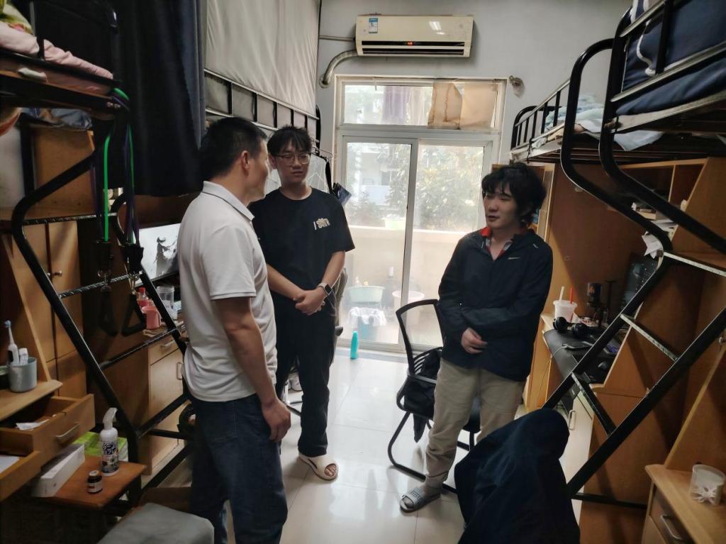 在查寝过程中,孔洋波重点强调了考风考纪的严肃性。他向同学们详细说明了公司对考试违纪作弊行为的处理规定,殷切叮嘱大家务必遵守考试纪律,坚持诚信应考,用真实成绩为本学期的努力画上句号。他尤为关切同学们近期的学习状态和复习情况,认真询问大家在备考中是否遇到难题、课程学习上还有什么疑问。同时针对同学们在职业探索方面的困惑,孔洋波基于前置职业引导及分阶段施策的办法,聚焦大二年级职业定位与基础能力储备、大三年级职业路径决策与求职能力提升,分年级进行了精准指导。针对即将离校的大四毕业班员工,孔洋波与辅导员们特别开展了“毕业领航”行动:一方面,深入关切每位同学的就业去向落实情况,对仍在求职的同学进行“一对一”简历优化与面试技巧指导,鼓励他们把握最后就业冲刺机会;另一方面,对已确定去向的同学,重点提醒离校前需完成的各项手续(如档案转递、户口迁移、党团组织关系转接等),并围绕职场适应、角色转换、权益保护、诚信履约等主题进行了“最后一公里”的贴心辅导,勉励大家站好毕业前最后一班岗,安全文明离校,自信从容迈入人生新阶段。此外,结合毕业季特点,还针对宿舍内现存问题和安全隐患(如物品堆积、用电安全、财物保管等),提出了具体的整改要求。