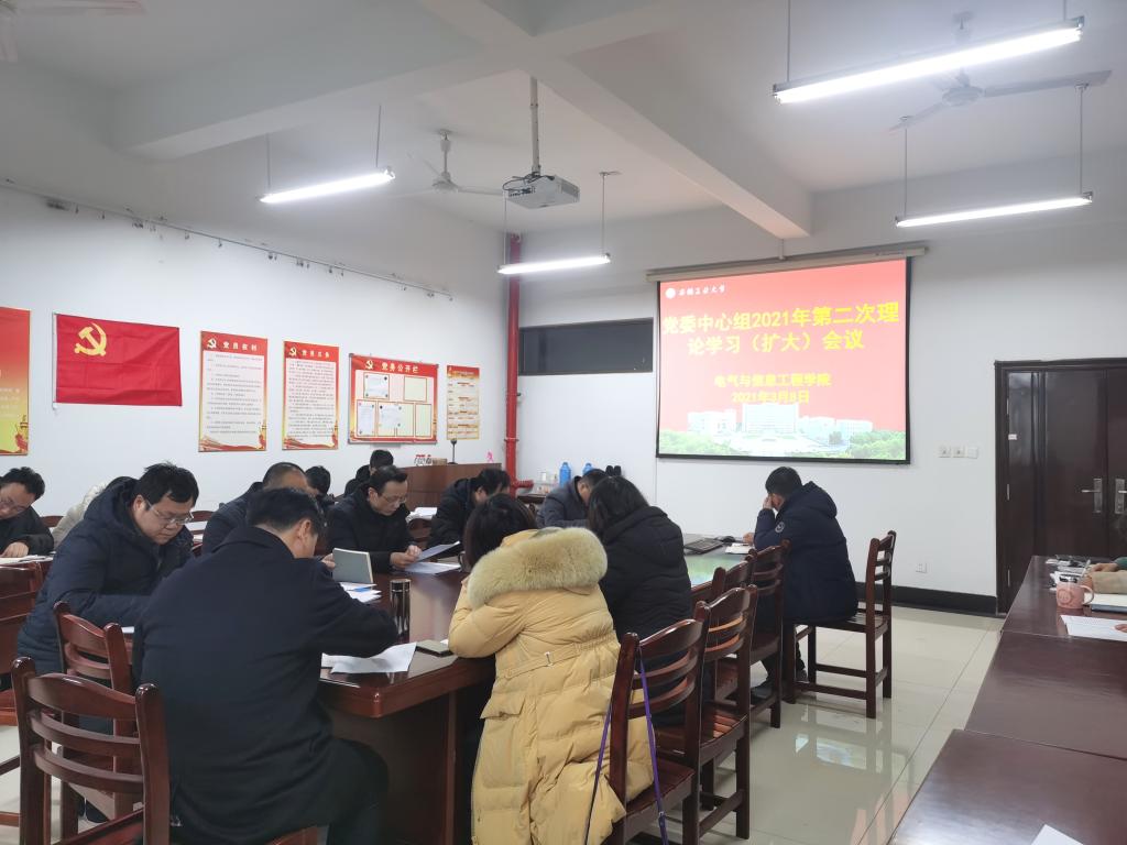 3月8日下午,公司党委中心组召开2021年第二次理论学习(扩大)会,公司党政领导、党委委员、党支部书记、系室中心主任、科级干部、工会主席和全体辅导员参加了会议,会议由公司党委书记丁忠利主持。