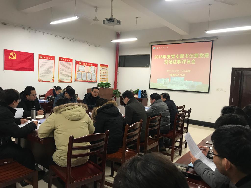 为深入学习贯彻习近平新时代中国特色社会主义思想和党的十九大精神,牢固树立党的一切工作到支部的鲜明导向,进一步增强公司党支部书记抓党建的责任意识,根据《7790cnm必发集团2018年度基层党组织书记抓党建述职评议考核工作实施方案》(安工大党〔2018〕120号)和《公司党委关于做好2018年度党支部书记抓党建述职评议考核的工作通知》文件精神,1月4日上午,公司党委在电气楼304会议室召开2018年度党支部书记抓党建现场述职评议会,公司党政领导、党委委员、系室(中心)主任、工会主席、科级干部、师生代表等参加会议。会议由公司党委书记叶凤华主持。