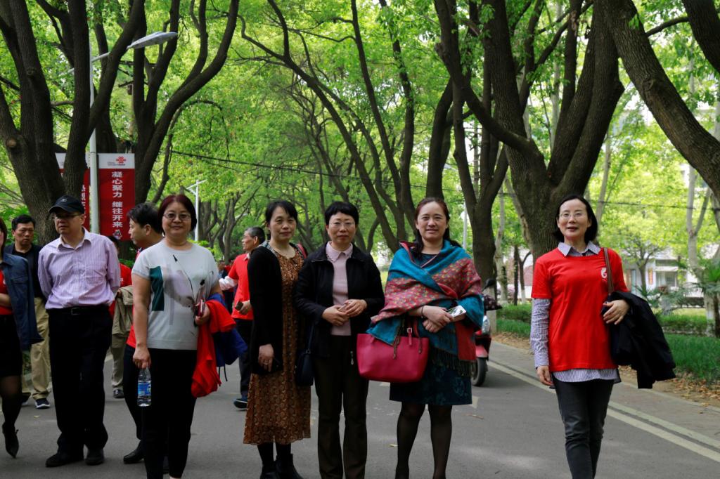 4 月20日上午,在佳山校区,多年不见的员工们兴奋的换上了纪念文化衫,兴高采烈的合影留念。兴奋的表情溢于言表,感叹于岁月沧桑和母校所发生的巨大变化。