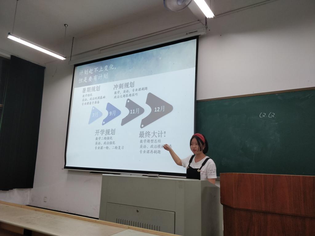 会上,学长们分别从报考公司、科目重点、时间分配、心态调整、复试调剂等方面介绍了自己的考研经历,分享了自己的心路历程。在自由提问环节,学长学姐耐心地为同学们做了解答,并且还向同学们推荐了一些优秀的教辅资料。