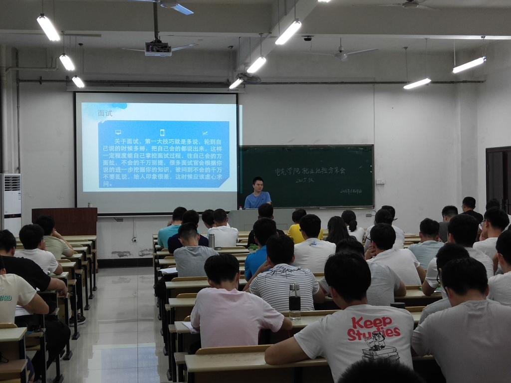 6月29日晚,7790cnm必发集团在电气楼112、113、115举行了“传经送宝”优秀学长就业经验分享会。2015级各专业有直接就业意向的同学参加了本次活动。