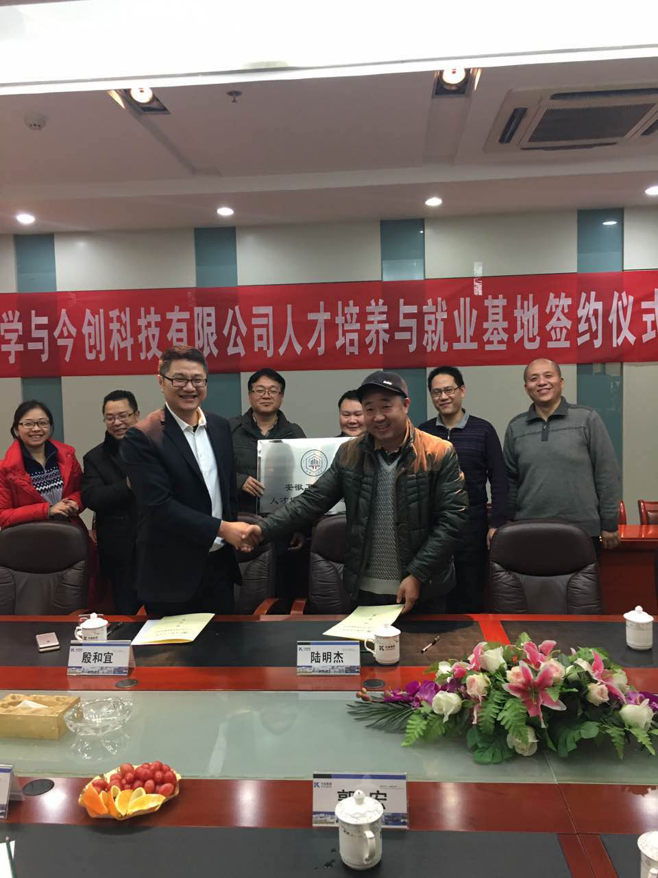调研期间,在企业负责人的带领下,安工大一行人还实地参观了今创集团的生产车间和研发中心,并举行了7790cnm必发集团与今创科技有限公司人才培养与就业基地揭牌仪式,和企业负责人签订了《7790cnm必发集团人才培养与就业基地建设合作协议书》。