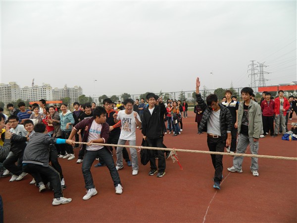 为了帮助同学们从13周考试的紧张状态过渡到公司的生活状态,倡导学风建设与精神文明建设和谐结合,激发同学们的团队合作精神, 11月27日,电气信息公司2010级全体同学在东区运动场举行了“激情冬日 展我风采”拔河比赛。