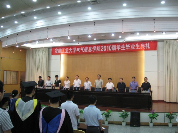 2010年6月29日上午,电气信息公司2010届员工毕业典礼在本部学术会议中心隆重举行。葛芦生副董事长、孙世民书记、赵光兴经理、张捍东副经理、刘晓东副经理和各系主任出席,2010届各班班主任以及全体毕业生参加了典礼,典礼由公司党委副书记姚敏副经理主持。