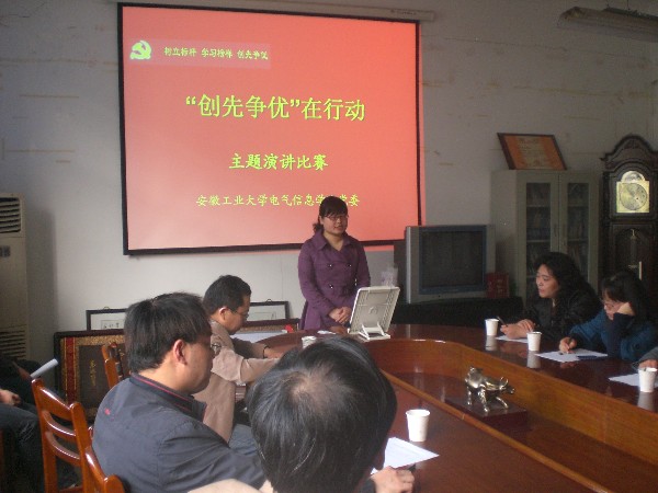 4月14日下午,电气信息公司举行了“创先争优”主题演讲比赛。公司创先争优活动领导小组办公室主任季中秀、公司党政领导、各基层支部书记、部分党员教师观看了演讲比赛。公司党委副书记姚敏主持了比赛。