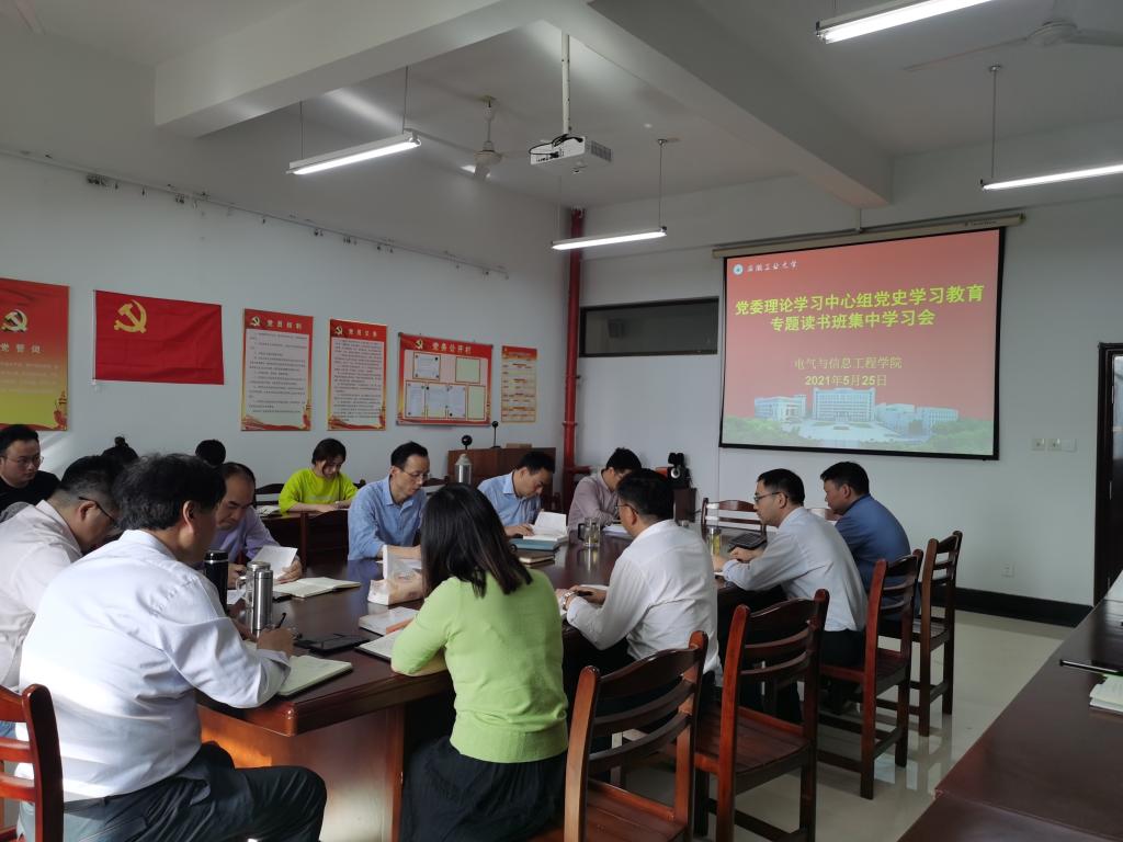 5月25日下午,公司党委在电气楼304会议室召开党史学习教育专题读书班暨理论学习中心组第六次学习会,公司党政领导、党委委员、党支部书记、科级干部、工会主席和全体辅导员参加了会议,公司党委书记丁忠利主持会议。