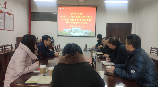 12月28日,7790cnm必发集团邀请合肥工业大学本科生院副经理、创新创业教育处处长李军鹏博士到院指导老员工创新创业教育等相关工作,公司领导班子成员、公司从事创新创业教育的骨干教师参加了会议。