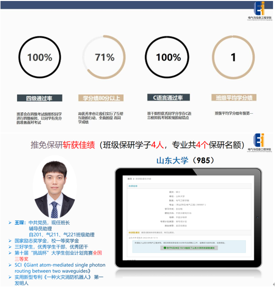 三年来,在公司领导的关心关怀下,在辅导员、班主任及全体同学的努力下,气191班将党建+团建落实、专业+创新落细、爱心+耐心落地,打造了一个有引领力、影响力、创造力的集体。班级3次获得校先进班级荣誉称号,团支部多次获得“五四红旗团支部”、“活力团支部”荣誉称号。班级同学提交入党申请书100%,拥有10名党员,占比25%,为公司班级中最高。班级同学发表SCI论文两篇,其中1篇为SCI二区TOP,申请专利5项,在科技竞赛共获国家级奖项3项,省级奖项11项,班级同学主持国创项目2项,省创项目8项。班级四级通过率100%,C语言省二级通过率100%,今年,专业推免名额共4个,4个名额全部花落该班。