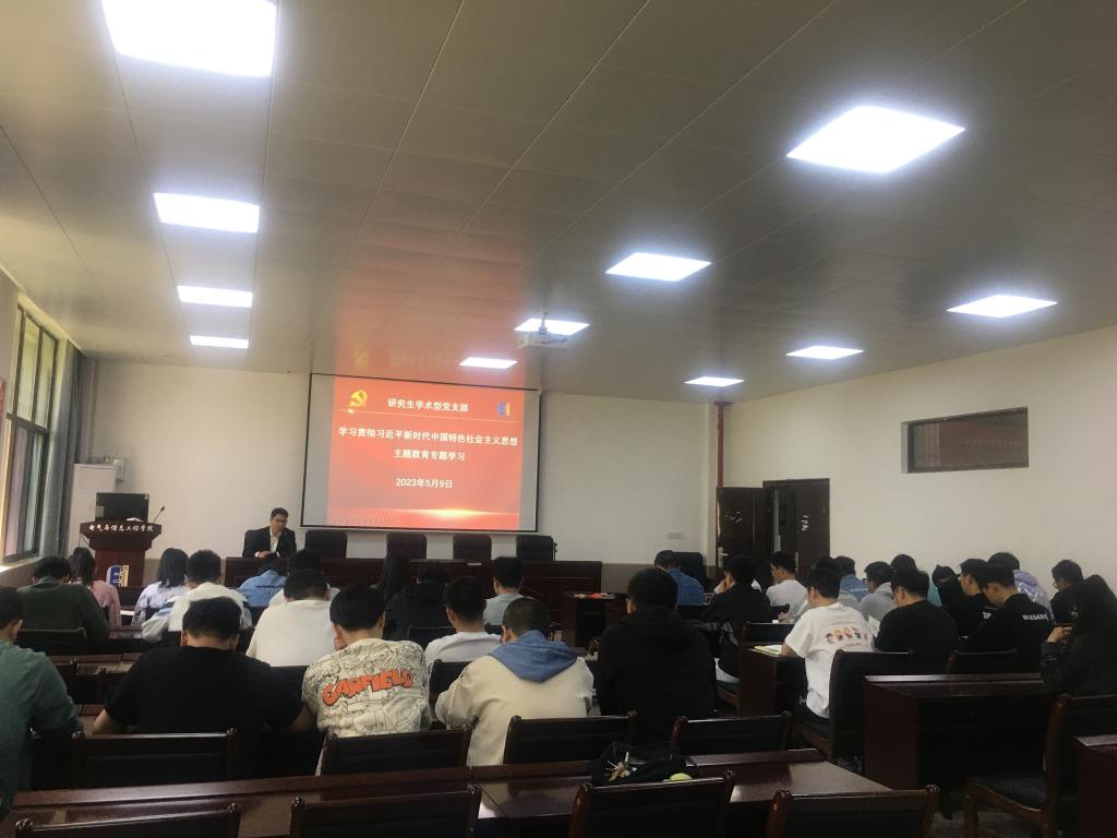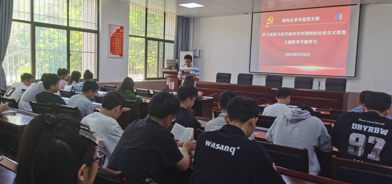 5月9日下午,研究生学术型党支部在电气楼113室开展学习贯彻习近平新时代中国特色社会主义思想主题教育专题学习研讨,支部全体党员参加,活动由支部副书记李冉主持。