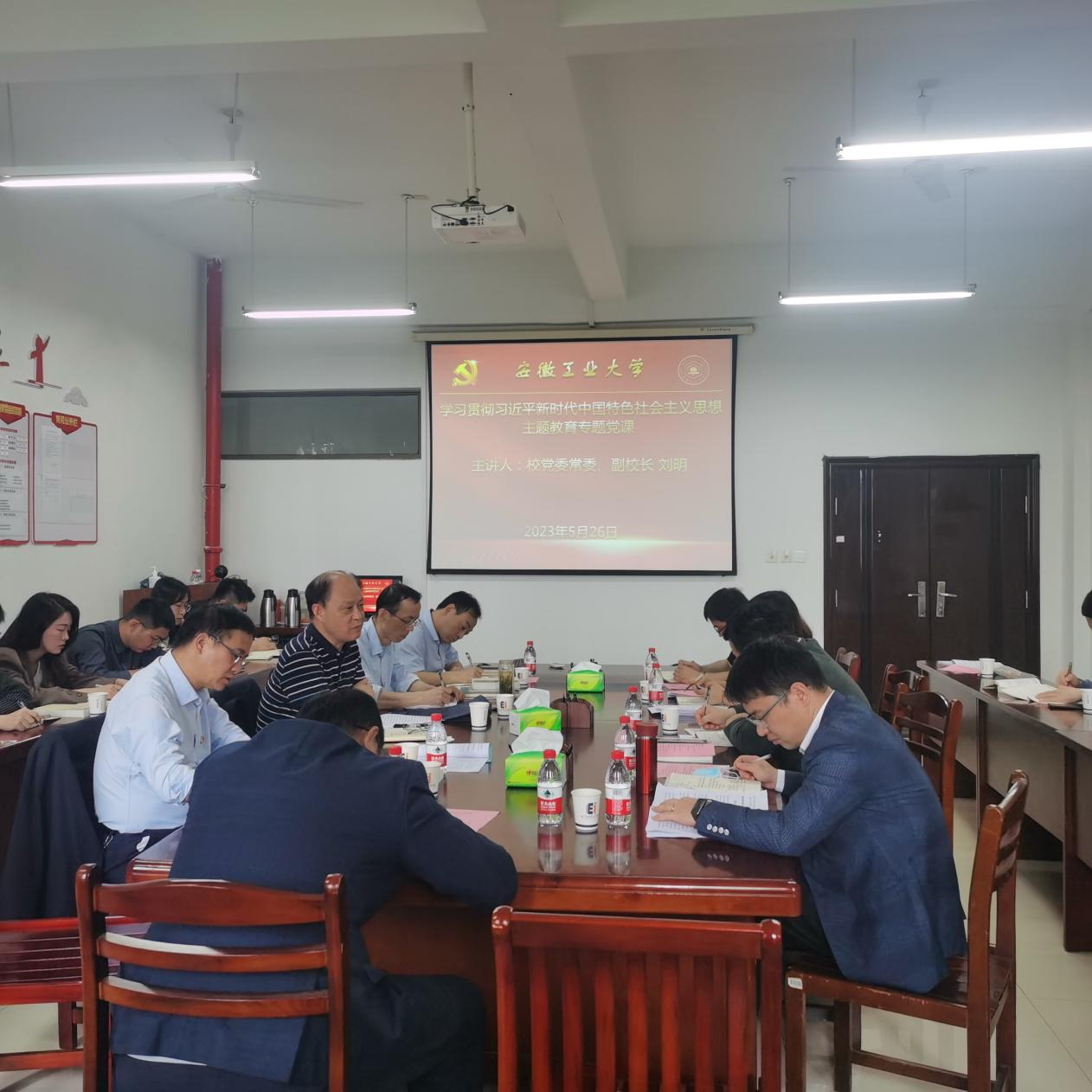 为深入开展学习贯彻习近平新时代中国特色社会主义思想主题教育,5月26日上午,7790cnm必发集团和建筑工程公司两个公司的党委在电气楼304室召开中心组政治理论联合学习会,公司党委常委、副董事长刘明到会指导并讲授专题党课,两个公司党政领导、党委委员、党支部书记、系主任及辅导员代表参加学习会,会议由公司党委书记丁忠利主持。