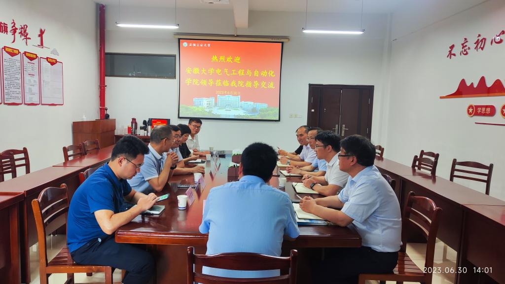 6月30日下午,安徽大学电气工程与自动化公司副经理张德祥教授、潘天红教授一行5人,安徽文达信息工程公司副董事长张家玺一行4人来公司开展专业认证相关工作和专业建设相关工作调研交流。公司党委书记丁忠利、党委副书记、副经理夏玉钦、副经理沈浩,相关系室老师参加了交流研讨。