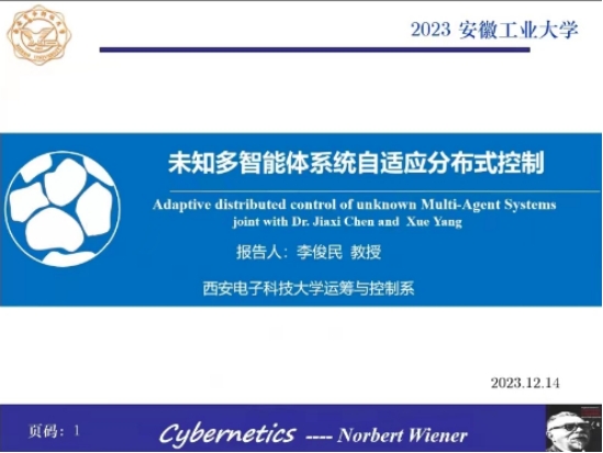 为了加强院校间的学术交流,营造浓厚学术氛围,开阔师生学术视野,加强公司科研团队建设。12月14日,应公司经理沈浩教授和郭亚晓博士的邀请,西安电子科技大学运筹与控制系主任、运筹学与控制论博士点校学术带头人李俊民教授为公司师生作了题为“未知多智能体系统自适应分布式控制”的线上学术报告,报告由沈浩主持,公司部分教师和研究生参加会议。
