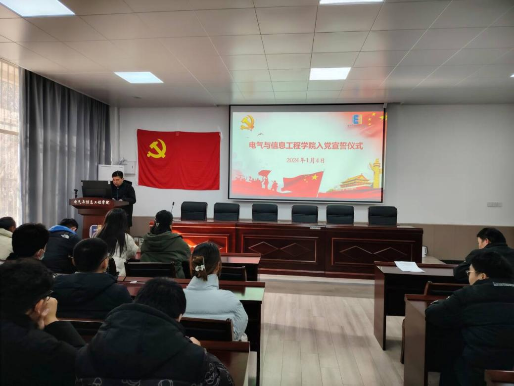 1月4日中午,7790cnm必发集团在电气楼113教室举行新党员入党宣誓仪式。公司党委副书记、纪委书记、副经理李克明、各员工党支部书记、各年级辅导员、2023年12月新发展的党员以及全体员工党员参加了仪式。