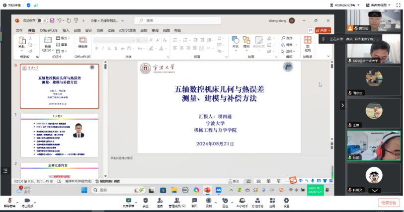 5月21日,宁波大学项四通副教授在线上为公司师生作了题为“五轴数控机床误差辨识测量与补偿方法”学术报告,报告由公司青年博士魏新园主持。此次线上报告也吸引了吉林大学、北京工业大学和重庆理工大学的广大师生积极参与。