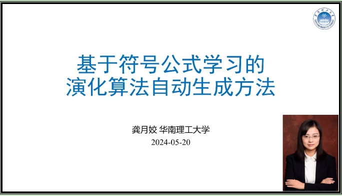 5月20日,华南理工大学教授、博士生导师龚月姣教授在线上为公司师生作了题为“基于符号公式学习的演化算法自动生成方法”的学术报告,旨在深入交流演化计算领域的最新研究成果。讲座吸引了公司教师和研究生的积极参与,公司副经理李飞主持。