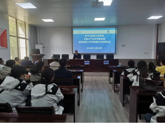 10月23日上午,公司在电气楼113室开展召开全面从严治党专题会暨整改工作推进专题会,公司党政领导、党委委员、党支部书记和全体教职工参加,公司党委书记丁忠利主持会议。