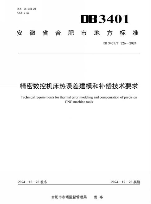 12月23日,公司教师牵头编制的合肥市地方标准《精密数控机床热误差建模和补偿技术要求》(DB3401T 326—2024)正式发布实施。公司测控系青年博士魏新园为该标准的第一起草人,公司的沈浩教授、钱牧云博士、李丹教授、黄三傲教授以及部分研究生共同参与了编制工作,此项工作得到了安徽省重点研究与开发计划项目的资助。