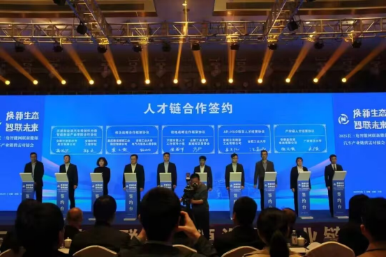 为了深入贯彻中央对科技自立自强、教育对经济发展的基础性战略性支撑的精神,有效推进产教融合和提升人才培养质量。3月28日,应宁国市委组织部邀请,公司副经理程木田(主持工作)一行参加宁国市承办的2025年长三角新能源智能网联汽车产业链供需对接会,并在会上与桑尼泰克精密工业股份有限公司签署了战略合作框架协议。宁国市委组织部对公司与桑尼泰克签署校企战略合作框架协议表示祝贺,表示将全力配合做好服务工作,确保双方合作高效推进、落实落地,共同打造校企协同发展的典范。