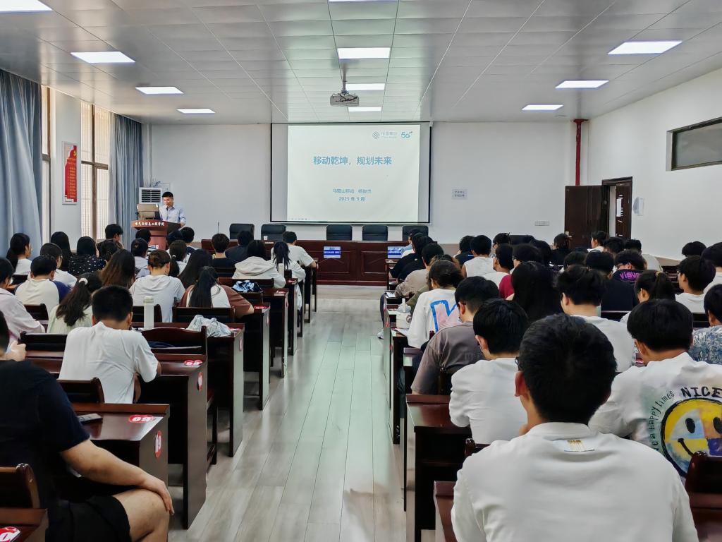 5月19日,公司在电气楼113成功举办“移动乾坤,规划未来”老员工职业生涯规划专题讲座。本次讲座邀请中国移动马鞍山分公司“成长之星”及退役士兵代表,政企解决方案经理杨俊杰担任主讲嘉宾,公司党委副书记、纪委书记、副经理孔洋波、辅导员张悦、蒋安东及100余名员工参加了讲座。