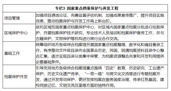 14.强化档案安全保护工作。完善档案安全管理责任制度,健全档案相关保密审查机制,组织开展经常性档案安全保密教育。完善区域性国家重点档案保护中心运行机制和评估标准,发挥其在档案保护技术研究应用、档案保护修复人才培养储备方面的引领辐射作用。鼓励有条件省份建立省域档案保护中心。加大纸质档案保护和修复关键技术推广应用力度。建立档案服务外包安全工作监管机制,着力对安全风险较高的寄存托管、数字化、信息系统建设等重点领域实施监管。