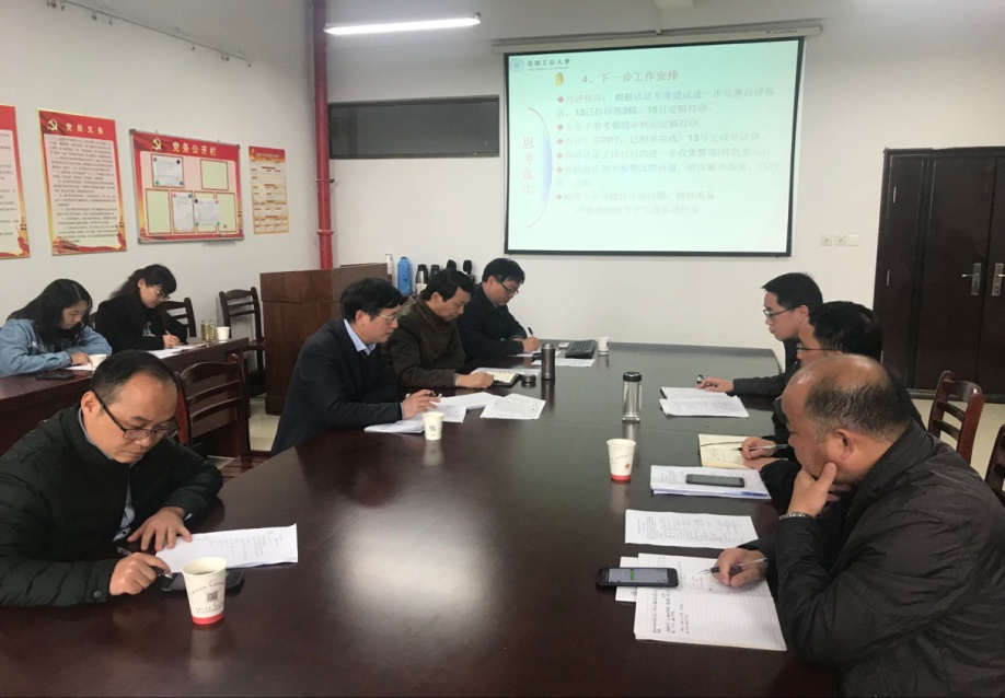 教务处处长秦锋结合其它专业工程认证经验对现场考察工作提出相关建议。公司就专业认证准备情况、存在的问题和下一步工作安排进行了汇报。