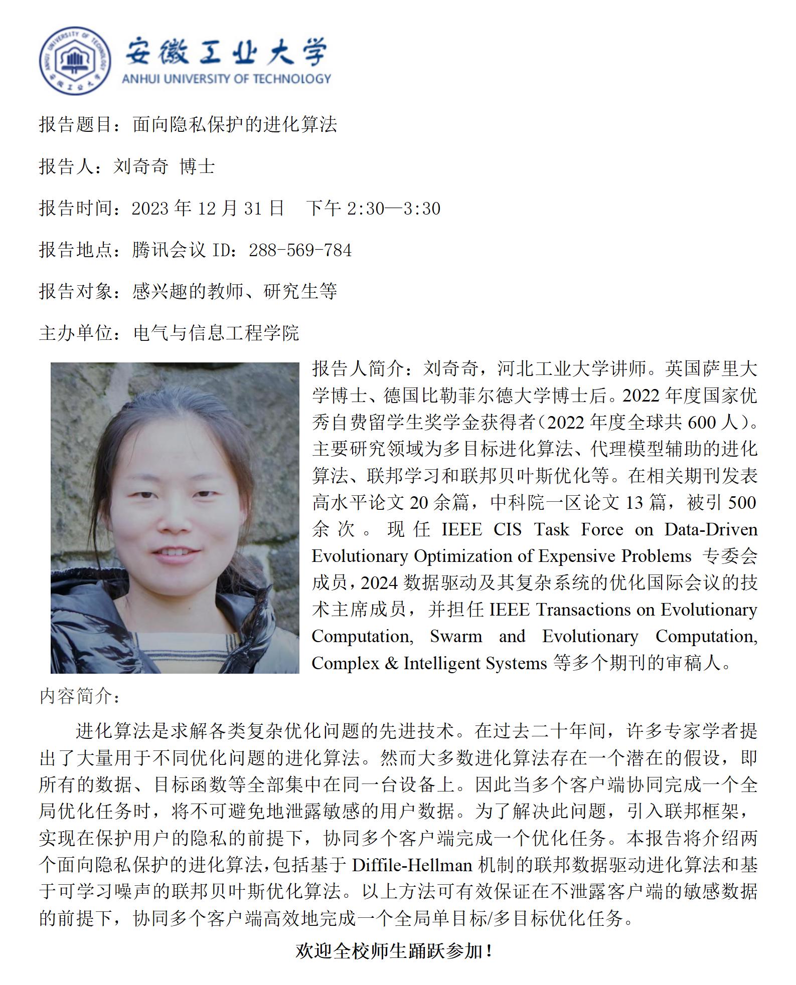 砺山学术报告之二十六-面向隐私保护的进化算法