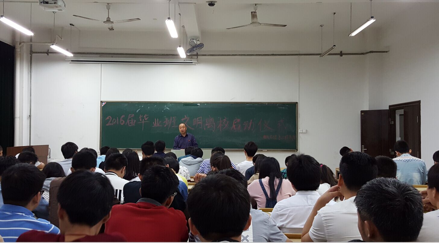徐悦详细讲解了一下公司文明离校的各项活动公司在6月将举办如下文明离校活动:利用微信公众平台举办“吐露心声,真情传递”——对母校的美好祝愿留言活动;与院里老师一起开展篮球赛足球赛;“我的青春留痕”大一到大四照片征集活动;考研、找工作经验交流会;毕业生为公司捐款购买纪念品活动等。特别是本次公司将举办毕业生学位授予仪式,要求同学们熟悉授予流程,严格控制班级展示视频时间,确保授予仪式顺利进行。
