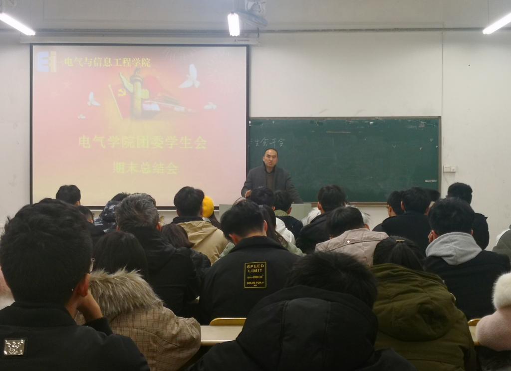 会上,院团学主席团成员汇报了本学期各部门主要工作情况、成绩和下一步打算。李修正对团委员工会本学期工作做了总结,表达了对同学们的工作的肯定,希望同学们能继续砥砺前行,在做好团委员工会工作的同时得到更多的锻炼,提升公司团学工作水平。夏玉钦在总结讲话中表示:本学期,同学们付出很多的努力,取得了很好的成果,电院好的传统要一届一届地传承下来,也要不断的加以创新,活动开展要整体考虑,做到员工乐参与、有收获、成体系、筑品牌。他要求一要增强政治意识和大局意识,提高站位、精确定位,做好老师开展员工思想政治工作的得力助手;二要增强学习意识,加强团学各部门间的总结交流、学习和借鉴,不断提升整体工作水平;三要增强创新求实和服务奉献意识,实实在在地为员工和老师解决问题;四要增强责任和团队意识,发挥好团队的力量。各部门应同心同向同力,相互协作,树立电院品牌,最大限度地发挥团学活动的实效和影响力。最后,他希望,临近期末考试,团学干部要认真组织和落实复习备考,带头遵守考风考纪,收获优异的成绩。