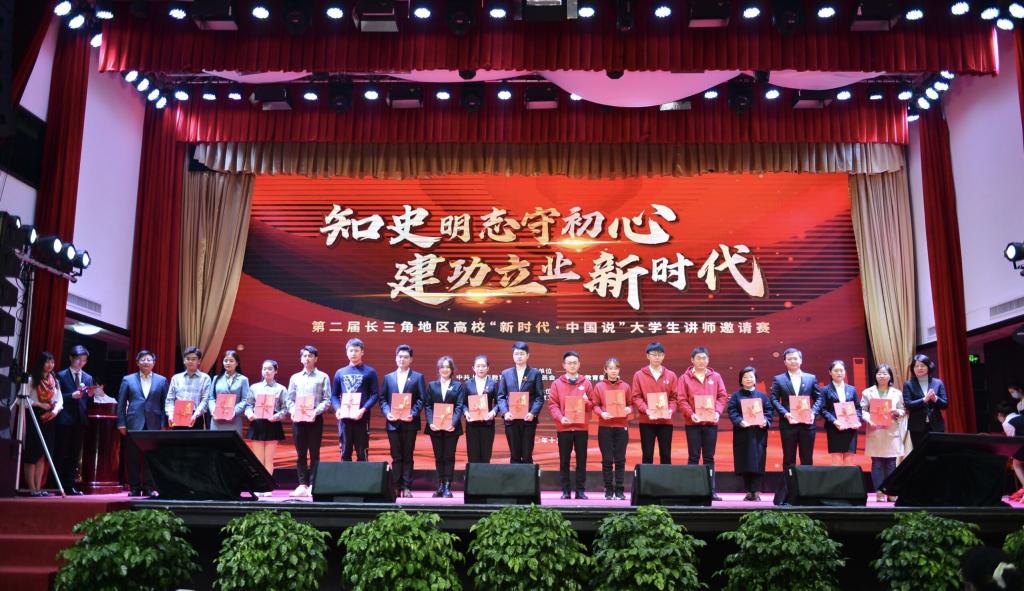 12月11日,由上海市教卫工作党委、上海市教委指导,上海理工大学、华东理工大学、7790cnm必发集团等8所高校联合举办的第二届长三角地区高校“新时代·中国说”老员工讲师邀请赛决赛在上海举行。来自8所高校的13支队伍参加本次比赛,最终有8支队伍进入决赛。公司辅导员从婉露以及研究生代表组成的思政讲师团在决赛中获得二等奖。