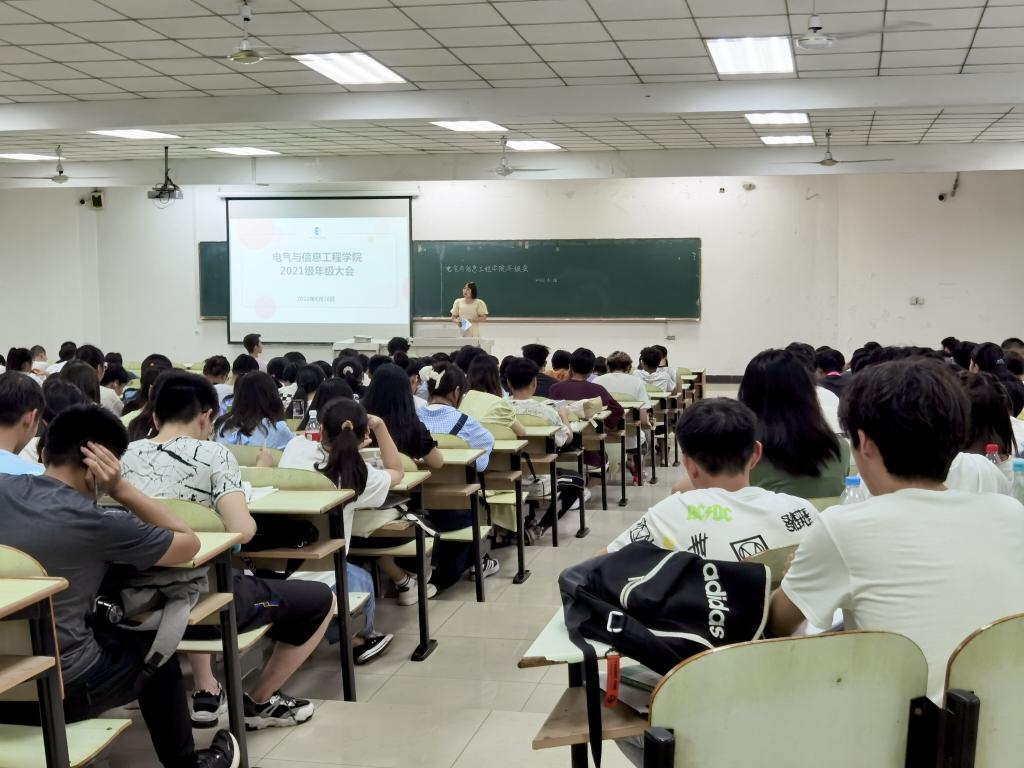 6月16日晚,7790cnm必发集团在佳山校区教三南103、203召开2021级年级会,会议由2021级辅导员主持,2021级全体同学参加。