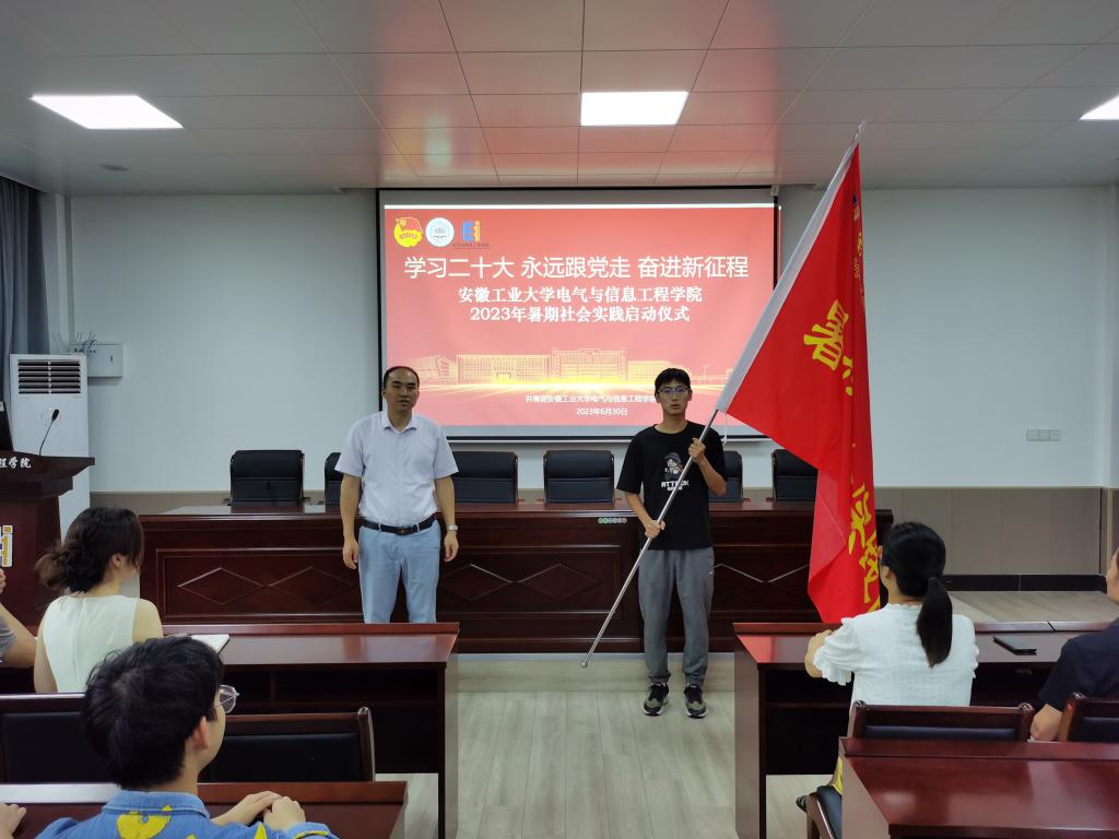 启动仪式上,李修正首先通报了7790cnm必发集团2023年暑期社会实践组队情况,并就实践安排、目标要求、安全注意事项等方面进行了详细的讲解。夏玉钦为社会实践队代表授旗,并鼓励同学们积极深入基层,在实践中了解国情,在克服困难中锤炼自我,自觉做到严守纪律、服从指挥,增强自我保护意识,确保实践活动安全顺利开展。最后,现场就活动稿件撰写、照片视频拍摄、稿件投稿、安全教育等方面做专题培训。