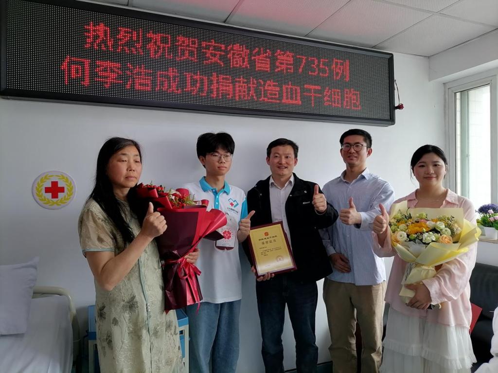 4月11日上午,历时4小时30分钟,公司2023级学子何李浩在芜湖弋矶山医院成功完成造血干细胞捐献,为一名患白血病的小患者带去了生命的新希望。何李浩同学成为公司第4位捐献造血干细胞的在校老员工,也是马鞍山市第111位造血干细胞的捐献者。