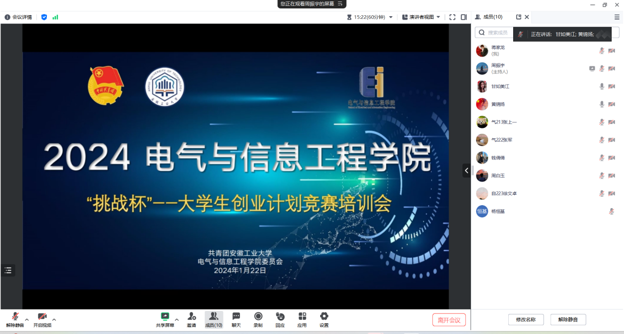 公司开展2024年“挑战杯”校赛项目线上模拟培训会