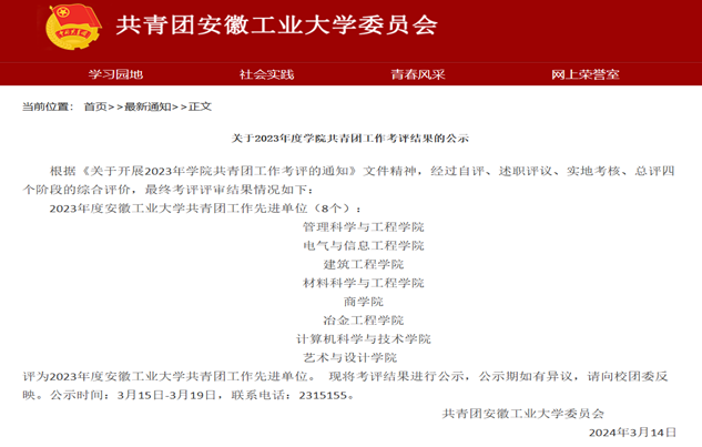 【电院荣光】公司团委在公司2023年度共青团考核中获得优秀等次