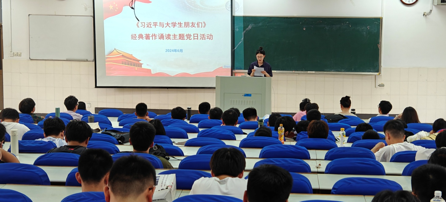 会上,来自研究生学术型党支部的党员代表黄雅玲带领大家学习了《习近平与老员工朋友们》中的一个章节:“习近平总书记勉励我们爱国、励志、求真、力行”。她以饱满的精神状态投入到诵读中,声音洪亮而坚定,带大家重温了习近平总书记来到北京大学的采访和学习经历。习近平总书记勉励广大青年要“爱国、励志、求真、力行”,努力成长为德智体美劳全面发展的社会主义建设者和接班人,让中华民族伟大复兴在奋斗中梦想成真。