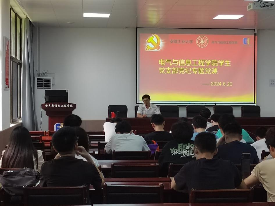为扎实推进党纪学习教育走深走实,加强党员党性教育,提升党员纪律意识,6月10日,公司员工电气工程党支部,员工通信工程党支部在电气楼113开展党纪学习教育专题党课,由员工电气工程党支部副书记蒋安东主讲,支部全体员工党员参加。